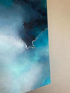 Marně jsem se do tohohle obrazu snažila vnést nějaký teplý tón, např. hnědou nebo zlatou, ale nakonec je celistvý takhle chladný a já jsem si teď už jistá, že to je přesně to, co obraz potřeboval. Stříbrná dodala jistou živost a podtrhla jeho jemnost.